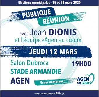Nous le savons : avec une configuration de trois listes principales, n’ayant pas de proximité les unes avec les autres, le premier tour sera décisif et nous devons marquer l’essai de la victoire le dimanche 15 mars ! Pour cela, encore faut-il se mobiliser pour voter « Agen au cœur », pour voter Jean Dionis le dimanche 15 mars !